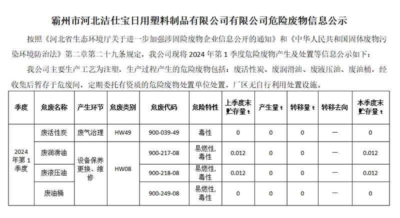 危險廢物公示信息2024-1季度